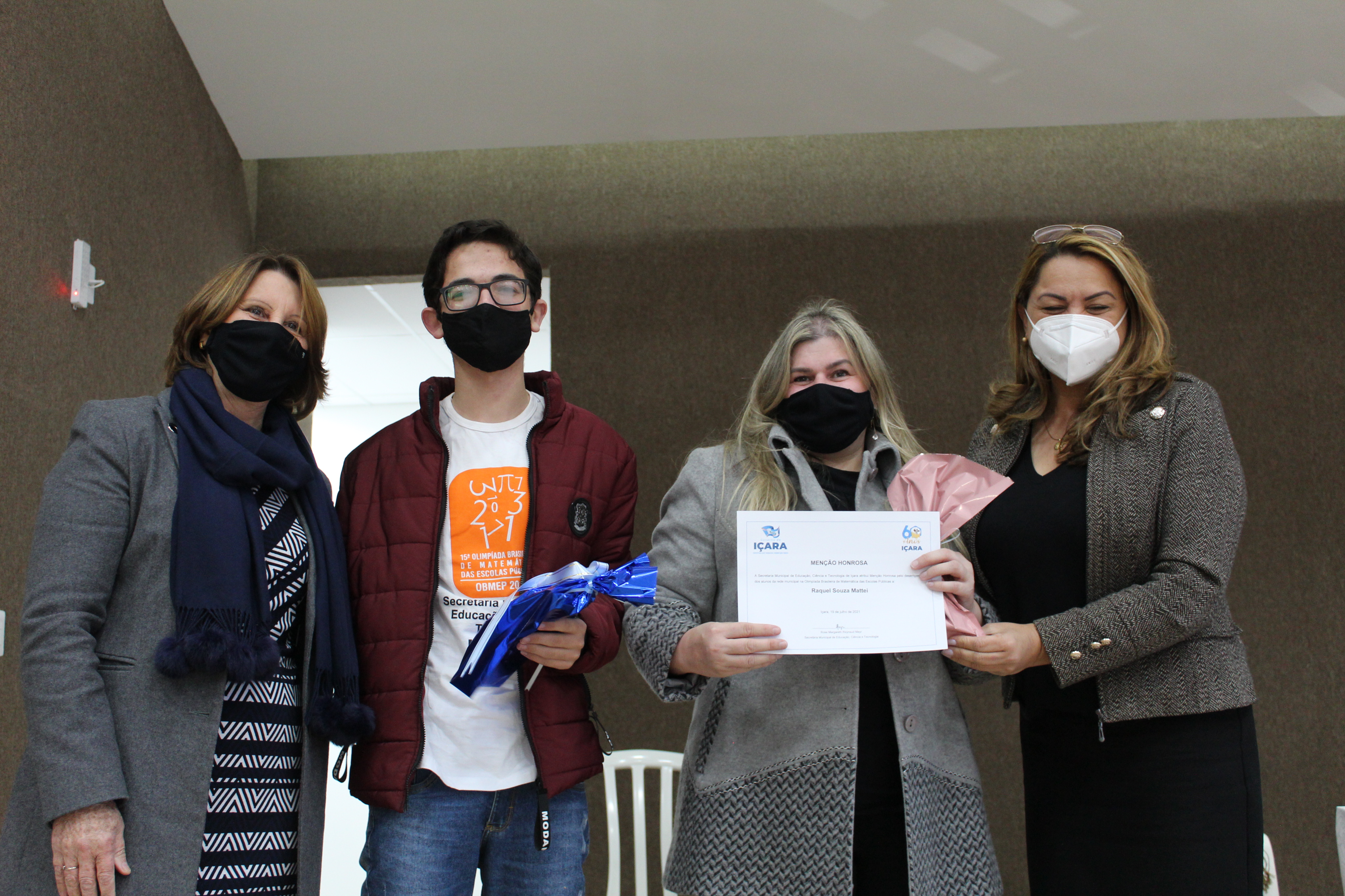 O Governo Municipal de Içara, através da Secretaria de Educação, Ciência e Tecnologia, entregou na manhã desta segunda-feira, dia 19, o prêmio da Olimpíada Brasileira de Matemática das Escolas Públicas (Obmep) de 2019 e 2020, além do Concurso Canguru de Matemática 2021. Os alunos e seus familiares foram recepcionados em duas cerimonias, nas quais receberam diplomas, medalhas e prêmios alusivos aos títulos obtidos.