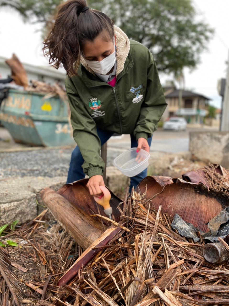 Conforme a agente de endemias e chefe da equipe de monitoramento, Sílvia Pereira Rocha, além de garrafas, pneus entre outros objetos, existem também os recipientes naturais como folhas de coqueiros, muito comuns no município, que atuam como armazenadores de água. “As pessoas precisam quebrar essas folhas após uma poda ou uma queda natural e colocarem elas no lixo para jogar fora. Também não recomendamos que façam fogo com elas”, orientou, Silvia.